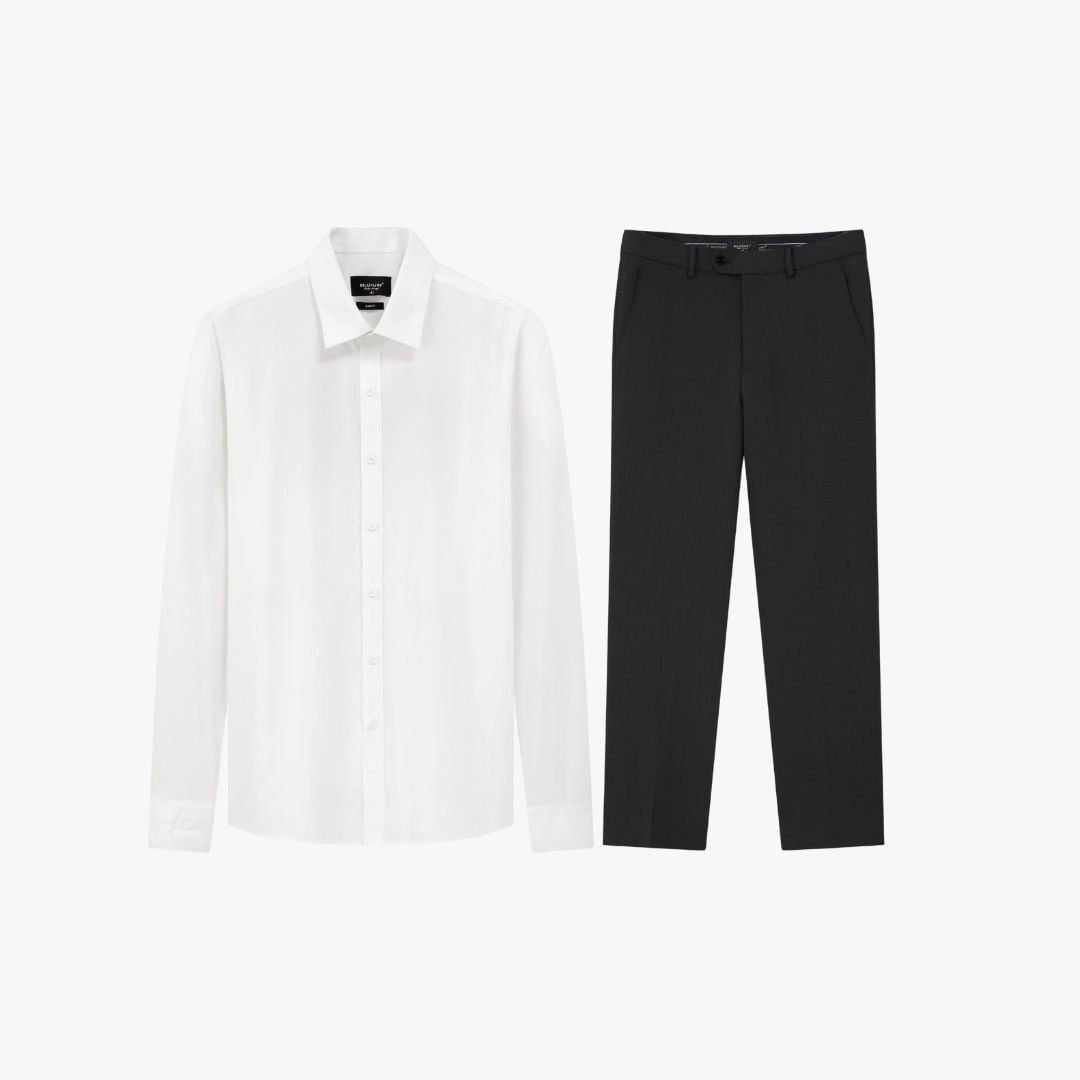Combo Áo Sơ Mi Dài Tay Và Quần Âu Đen Cao Cấp 9SMDB547 – 9QAUB536